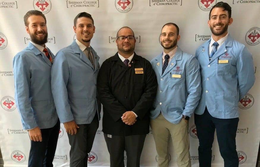 On June 23rd, 2014 six men from Sherman College of Chiropractic made a twelve hour journey to Davenport, Iowa with the hope of becoming members of the Delta Sigma Chi Fraternity. What made them interested in joining was the allure of all the members of the fraternity that made a significant impact on chiropractic and being with likeminded people who wanted to protect the philosophy of chiropractic. After arriving at the mansion at 3 am they rested before their journey into the organization began. On June 24th the orientation process officially began. During the process the men got to know each other better and they got to know the brothers of Alpha Chapter better. The orientation process proved difficult with many physical and mental challenges, however, with help and guidance of their chosen big brothers they were able to overcome all of the obstacles that were presented to them. On July 4th, 2014 Rocco Crapis, Hector Morales, Tim Hartman, Sean Hickman, Jim Punghorst, and Nicholas Frigiola completed the orientation process and officially became brothers of the Delta Sigma Chi Fraternity, thus giving birth to the Chapter known as Omicron located in Spartanburg, SC. These brothers returned to Sherman College of Chiropractic with a mission to spread unadulterated straight chiropractic to the masses.